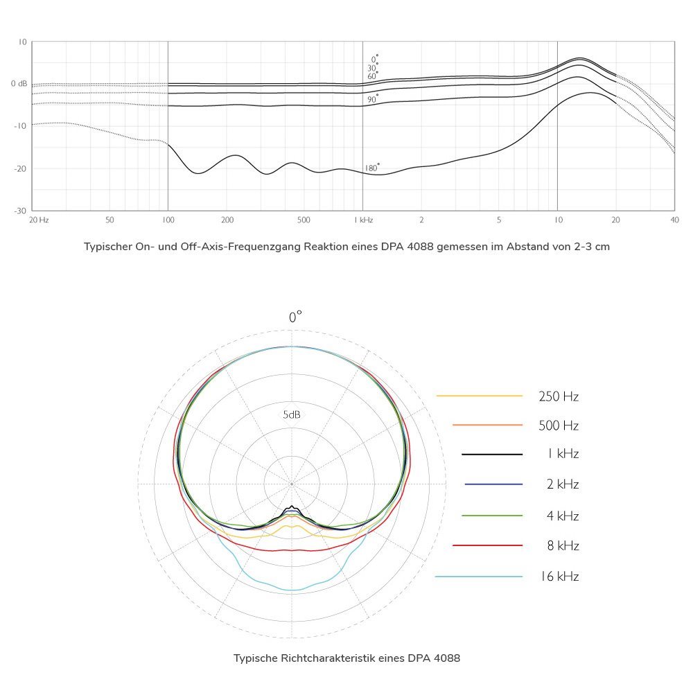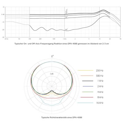 Über Mikrofone mit Nierencharakteristik Ein Mikrofon mit Nierencharakteristik (oder Richtwirkung) ist nach seiner „herzförmigen“ Richtcharakteristik benannt. Die höchste Empfindlichkeit liegt vorne, am wenigsten empfindlich ist es von der Seite und von hinten. Es gibt sie in vielen Variationen - mit breiterem oder schmälerem Bündelungsgrad (Superniere, Hyperniere, breite Niere usw.). Obwohl Mikrofone mit Nierencharakteristik den Sound von allen Seiten aufnehmen, wird dieser Sound außerhalb der Achse in der Regel mehr oder weniger gefärbt und gedämpft. Die einzigartige DPA-Kapseltechnologie übergeht jedoch die Färbung des Klangs, der von allen Seiten oder von der Rückseite des Mikrofons kommt und reduziert lediglich die Empfindlichkeit in diesen Winkeln, was zu optimalen Sound Stages führt. Die Höhe der Dämpfung hängt von den genauen Spezifikationen des Mikrofons ab.