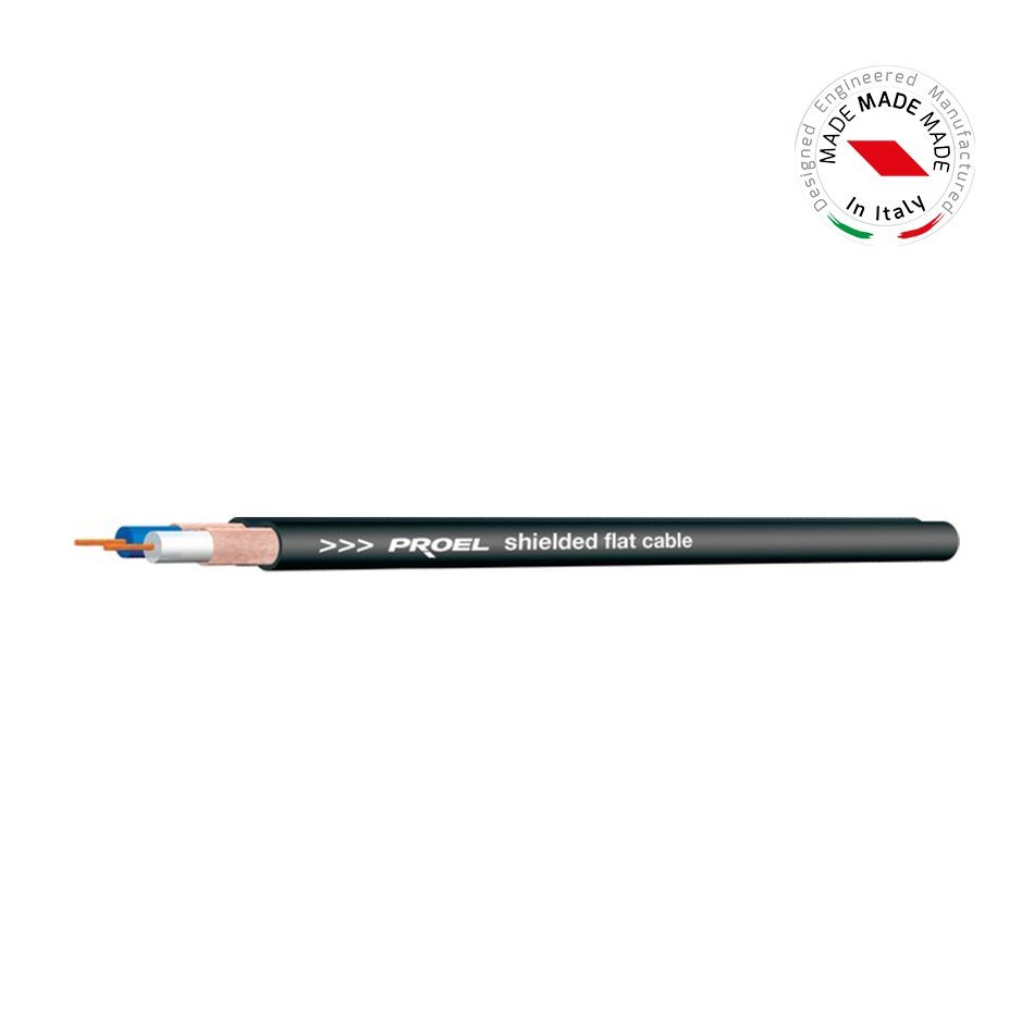 Doppeltes, koaxiales Audiokabel (Diodenkabel), einzeln geschirmt und parallel geführt (Flachkabel) für Stereo-Installationen und Einbau-Anwendungen.